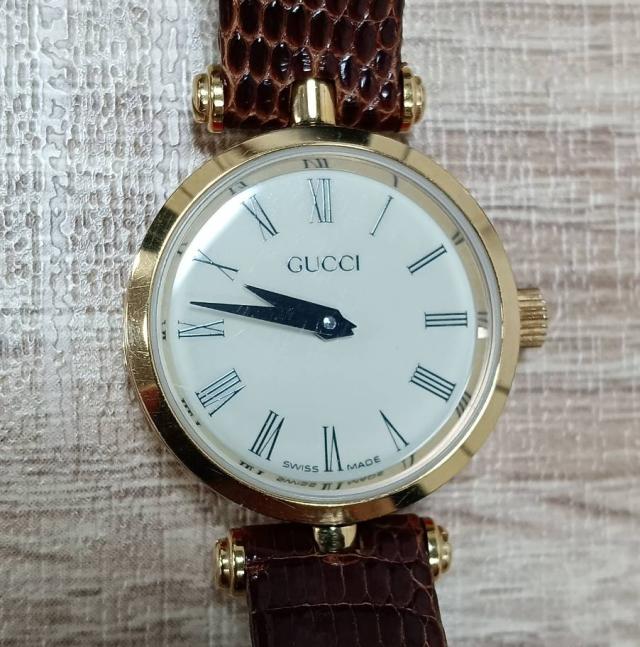 本日は、ブランドらしいデザインが特徴の「グッチ シェリーライン レディース腕時計」をお持ち込みいただきました。